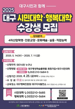 대구행복진흥원, 2025년도 대구시민대학·행복대학 상반기 강좌 선착순 모집