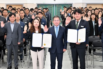 군위군(김진열 군수)은 1일 군청 대회의실에서 김진열 군수를 비롯한 직원 300여명이 참석한 가운데 깨끗한 공직문화 조성을 위해 청렴 결의대회 및 청렴교육을 개최했다.이번 결의대회는 직원 대표 두 명이 부패방지·청렴 결의문을 낭독하고 군수에게 전달하는 순으로 진행됐으며