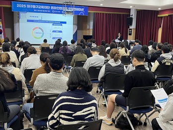 (재)대구동구교육재단(이사장 윤석준)은 지난 3일, 구청 대회의실에서 지역 학생 및 학부모 100여 명을 대상으로 ‘2025 대구동구교육재단 온라인 멘토링’ 오리엔테이션을 진행했다.이날 오리엔테이션에서는 교육재단 프로그램 및 온라인 멘토링 사업설명을 비롯해 ‘최근 입시