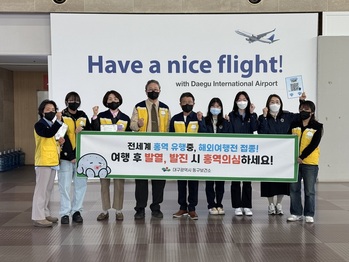 대구동구보건소는 지난 4일 제53회 보건의 날을 맞아 대구국제공항에서 홍역 예방 홍보활동을 펼쳤다. 캠페인은 △여행 전·중·후 단계별 홍역 감염 예방수칙이 담긴 리플렛 △홍보 물품(마스크) 배부 등으로 실시됐다.윤석준 동구청장은 “최근 해외여행 증가와 함께 홍