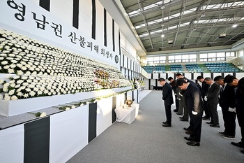 김진열 군위군수를 비롯한 군위군청 간부공무원은 지난 1일 오후 대구시 두류공원 내 안병근올림픽기념유도관에 마련된 영남권 산불피해 희생자 합동분향소를 찾아 안타깝게 목숨을 잃은 이들의 넋을 위로했다.산불로 삶의 터전을 잃은 인접 지자체를 지원하기 위해 관내 주요 기관·단