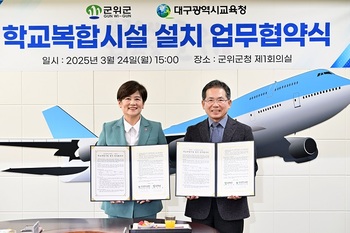 군위군(군수 김진열)과 대구시교육청(교육감 강은희)은 지난 24일 군위군청에서 군위군 학교복합시설(군위 아이사랑키움터) 사업 추진을 위한 업무협약을 체결했다.이번 협약은 구체적 사업실시를 추진하기 위한 실시협약으로 김진열 군위군수, 강은희 대구광역시교육감 및 홍종애 삼