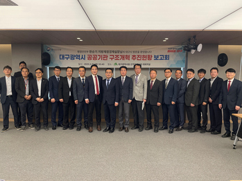 대구광역시는 25일 대구시청 산격청사 대회의실에서 한순기 행정안전부 지방재정경제실장이 참석한 가운데 ‘공공기관 구조개혁 추진현황 보고회’를 열었다.이번 보고회는 대구시의 혁신 사례와 성공 노하우를 공유하고, 이러한 성과를 전국적으로 확산할 방안을 논의하는 뜻깊은 자리로