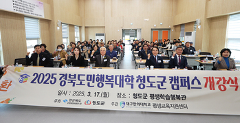 대구한의대학교(총장 변창훈) 미래라이프융합대학(학장 김진숙)이 위탁 운영하고, 경상북도(도지사 이철우)와 청도군(군수 김하수)이 주관하는 ‘경북도민행복대학 청도군 캠퍼스’의 입학식이 지난 3월 17일 청도평생학습관 3층 다목적 강당에서 성황리에 진행됐다.이날 행사에는