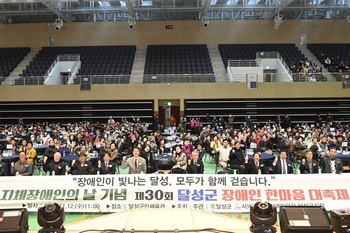달성군(군수 최재훈)은 12일 현풍읍 달성군민체육관에서 ‘제30회 달성군 장애인 한마음 축제’를 성황리에 개최했다고 밝혔다.이날 행사는 ‘장애인이 빛나는 달성, 모두가 함께 걷습니다’를 주제로 열렸다. 최재훈 달성군수를 비롯해 관내 장애인과 자원봉사자 등 1,000여