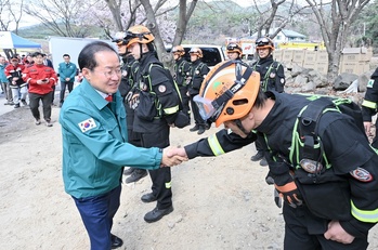 홍준표 대구시장은 28일 오후 달성군 옥포읍 함박산 산불 현장을 찾아 산불 진화 상황을 점검하고 현장 대응에 나선 관계자들을 격려했다.지난 26일 오후 7시 30분경, 옥포읍 기세리 산157번지 일대 8부 능선에서 발생한 이번 산불은 급경사지와 강풍 등 악조건 속에 빠