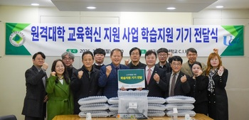 대구사이버대학교(총장 이근용)와 (사)대구광역시 장애인정보화협회(협회장 배상택)는 17일, 대구사이버대학교 본관 C.I.R회의실에서 장애인의 정보격차 해소와 학습권 보장을 위한 상호교류 협약식 및 학습지원 기기(노트북) 전달식을 열었다.이번 협약을 통해 양 기관은 ▲장