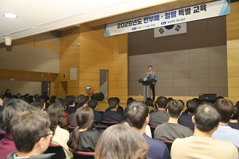 달성군(군수 최재훈)은 지난 14일 군청 군민소통관에서 고위직 공무원, 승진자, 신규 임용자 등 직원 250여 명을 대상으로 부패방지 청렴 특별교육을 진행했다고 밝혔다.‘반부패·청렴 특별 교육’은 바람직한 공직자상을 정립하고 청렴 실천의지를 높이는 데 목적이 있다. 질
