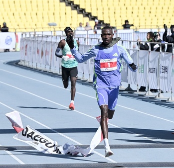 탄자니아의 게브리엘 제럴드 게이 선수가 ‘2025 대구마라톤대회’ 남자 엘리트 부문에서 2시간 5분 21초로 완주해 대회 신기록을 세우며 우승을 거머쥐었다. 게이선수는 우승상금으로 상금 13만달러(약 1억8700만원)를 받았다.23일 영하 5도 쌀쌀한 날씨