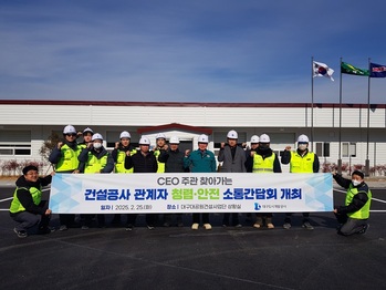대구도시개발공사(사장 정명섭)는 25일 대구대공원조성공사 현장에서 윤리경영과 안전문화 확산을 위한 ‘CEO주관 청렴·안전 소통 간담회’를 열고, 건설현장 관계자들과 적극적으로 소통하는 자리를 마련했다.이번 간담회에는 정명섭 사장을 비롯해 시공사, 감리단 관계자 등 20