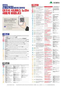 대구광역시는 도시철도 1호선 하양 연장, 대경선 개통과 신규 주택·산업단지 조성 등 도시환경 변화를 반영한 시내버스 노선 개편을 24일 시행한다.대구광역시는 지난해 10월 시내버스 노선 개편(안)을 마련해 주민설명회와 관계기관 협의 등으로 다양한 의견을 수렴해 검토했고