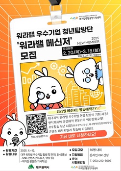 대구광역시행복진흥사회서비스원(이사장 배기철 이하 대구행복진흥원) 대구일생활균형지원센터는 청년들이 직접 ‘워라밸(Work-Life Balance) 우수기업’을 탐방하고 취재·홍보하는 ‘워라밸 메신저’를 모집한다.이 사업은 워라밸 직장문화를 확산하고 가족친화경영을 실천하는