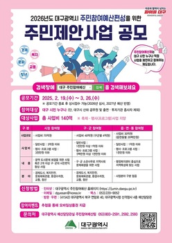 대구시, 2026년도 예산편성 위한 주민제안사업 공모