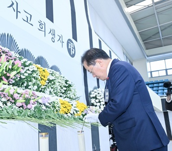 [동정] 홍준표 대구시장, 제주항공 사고 희생자 헌화·참배
