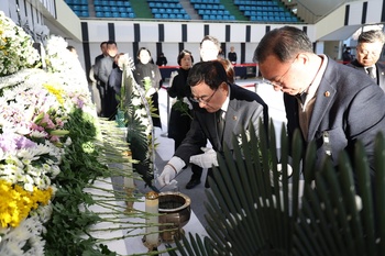 대구시의회 이만규 의장을 비롯한 시의원들은 12월 31일 오후 안병근올림픽기념유도관에 마련된 무안공항 사고 합동분향소에서 헌화와 묵념을 하면서 희생자들을 애도했다.이만규 의장은 “이번 참사로 유명을 달리하신 희생자분들의 명복을 빌고 유가족분들께 깊은 애도와 위로의 뜻을