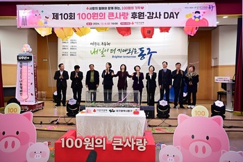 대구 동구만의 기부·나눔 행사이자, 동구 대표 복지 사업인 ‘100원의 큰사랑 후원의 날’ 행사가 지난 6일 구청 대회의실에서 개최됐다. 100원의 큰사랑은 주머니, 서랍 속에서 잠자고 있는 100원짜리 동전을 매일 꾸준히 모아 기부하는 나눔 행사로 올해 10