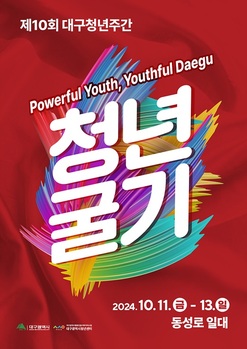 대구광역시는 ‘2024 대구청년주간’을 10월 11일부터 13일까지 3일간 동성로 일대(舊중앙파출소~동성로 28아트스퀘어~CGV대구한일)에서 진행한다.청년주간행사는 대구가 최초로 개최해 전국에 확산됐으며, 대구청년주간은 올해 10주년을 맞는다.‘2024 대구청년주간’은