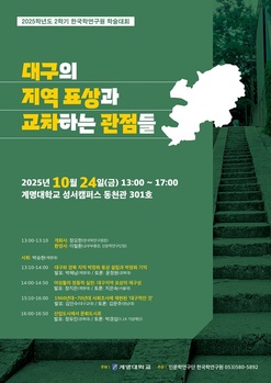 계명대(총장 신일희) 한국학연구원은 오는 24일 오후 1시부터 5시까지 성서캠퍼스 동천관 301호에서 ‘대구의 지역 표상과 교차하는 관점들’을 주제로 2025학년도 2학기 학술대회를 개최한다. 이번 행사는 대구 지역 정체성을 다각도로 조명하고, 현대 한국 사회