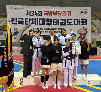 대구 수성구청(구청장 김대권) 태권도선수단은 지난 12일부터 20일까지 경북 문경 국군체육부대 선승관에서 열린 ‘제34회 국방부장관기 전국단체대항태권도대회’에서 여자 일반부 종합우승을 차지했다.수성구청 선수단은 이번 대회에서 강명진(–53kg급), 최여진(+73kg급)