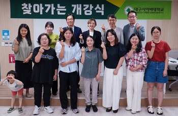 대구사이버대학교(총장 이근용) 사회복지학과는 지난 1일부터 2일까지 강원 원주시 원주여성개발인력센터와 대구 동구 가온사회적협동조합에서 2025학년도 2학기 개강을 맞아 ‘찾아가는 개강식’을 개최했다. 이번 행사는 사회복지학과 재학생과 입시 대상자를 중심으로 신