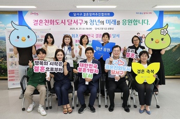 대구 달서구(구청장 이태훈)는 지난 27일 구청에서 ‘달서구 결혼장려추진협의회’를 열고, 청년을 응원하는 결혼친화사업의 활성화와 인구위기 대응 방안을 논의했다.2016년 12월 전국 최초로 출범한 결혼장려추진협의회는 분야별 전문가 14명으로 구성된 민·관·학 협력 네트