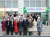 대구대학교 간호대학이 지난 10일 대명동 캠퍼스 본관 1층 라운지에서 ‘간호대학 승격’을 기념하는 현판식을 가졌다. 대구대는 지난 2010년 간호학과를 개설한 후 빠르게 발전하면서 기존 학부제에서 올해 2022학년도에는 별도의 단과대학인 간호대학으로 승격시켰다. 이번