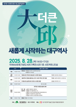 대구시는 대구사학회와 함께 오는 28일 오후 2시 국채보상운동기념도서관 1층에서 ‘더 큰 대구, 새롭게 시작하는 대구역사’를 주제로 공동학술회의를 개최한다.이번 학술회의는 1995년 이후 추진되지 못했던 대구 시사 편찬을 준비하기 위한 첫 공식 학술 행사로,