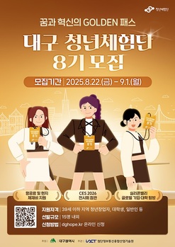 대구시는 지역 청년들의 글로벌 역량 강화와 창의적 문제 해결 능력 함양을 위해 ‘4차산업혁명 청년체험단 8기’ 참가자를 8월 22일부터 9월 1일까지 모집한다.‘4차산업혁명 청년체험단’은 CES 2026, 실리콘밸리 등 세계적인 기술 현장을 직접 체험하며, 이를 지역사