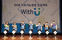 DGB금융그룹(회장 김태오)은 4일 제2 본점 대강당에서 DGB의 나눔경영 최일선에서 업무를 수행할 봉사단 통합 발대식을 가졌다.이날 사회공헌사업 브랜드 ‘With –U’ 선포와 함께 진행된 행사는 지역대학생 100여 명으로 구성된 With-U 대학생봉사단, 금융소외계