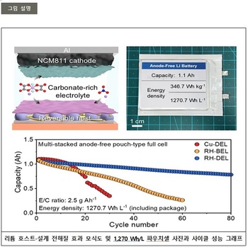 POSTECH(포항공과대학교) 화학과 박수진 교수·한동엽 박사, KAIST(한국과학기술원) 생명화학공학과 최남순 교수·김세훈 박사(現 한국전자통신연구원), 경상국립대 재료공학과 이태경 교수·손준수 연구원 공동 연구팀이 최근 ‘무음극(anode-free) 리튬금속전지’에