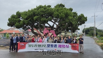포항시(시장 이강덕)는 16일 청하면 용두리 397번지 일원에서 ‘용두리 향나무’ 포토존 제막식을 개최했다.이번 행사에는 마을에 전해 내려오는 향나무 전설을 되새기고, 자연과 마을의 공존을 기원하기 위해 마련됐다.제막식에는 포항시 이경식 그린웨이추진과장, 김