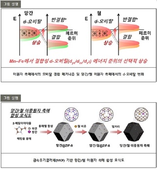 POSTECH(포항공과대학교) 화학공학과·배터리공학과 김원배 교수, 배터리공학과 석사과정 원상연, 화학공학과 통합과정 지준혁 씨 연구팀은 망간(Mn)과 철(Fe) 두 금속 원자가 결합된 ‘이원자 촉매’를 설계해 반응 속도를 높이면서도 안정성을 확보하는 데 성공했다.&n