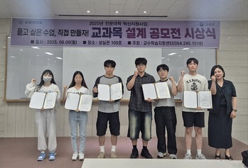 포항대학교(총장 하민영) 교수학습지원센터(센터장 김현애)는 지난 9일 성실관 세미나실에서 ‘2025학년도 교과목 설계 공모전 시상식’을 개최했다.교과목 설계 공모전은 대학혁신지원사업의 일환으로 재학생들이 자기주도적인 교과목을 설계하고 다양한 교과목 아이디어를 공유하기