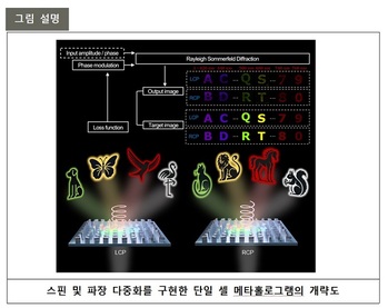 POSTECH(포항공과대학교) 기계공학과·화학공학과·전자전기공학과·융합대학원 노준석 교수팀이 머리카락보다 100배 이상 얇은 메타표면에 최대 36개의 선명한 이미지를 담아내는 혁신적인 기술을 개발했다. 이번 연구는 재료과학과 나노 분야 학술지인 ‘어드밴스드 사