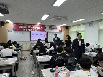 포항교육지원청(교육장 최한용)은 지난 10일, 발명교육센터 및 세미나실에서 초·중학생 55팀(110명)이 참가한 제43회 청소년과학탐구 포항시대회를 개최했다.이번 대회는 지난달 26일 열린 예선대회에 참가한 94팀 (188명) 중 우수한 성적을 거둔 팀이 본선에 진출하