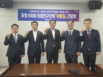 포항시의회 의원연구단체 ‘바람길’이 지난 15일 오후 시의회 3층 회의실에서 간담회를 갖고 본격적인 연구활동의 시작을 알렸다.의원연구단체 ‘바람길’은 신재생에너지 개발과 포항형 해상풍력 발전에 대한 체계적인 연구를 주제로 구성된 단체로, 포항의 지속가능한 발전을 위한