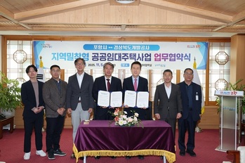 포항시(시장 이강덕)는 5일 시청에서 경상북도개발공사(사장 이재혁)와 ‘지역밀착형 공공임대주택 공급사업’ 추진을 위한 업무협약을 체결했다.이번 협약은 청년과 신혼부부 등의 주거안정을 위한 것으로, 포항시와 경북개발공사가 처음으로 손잡고 추진하는 주거복지 협력 사업이다.