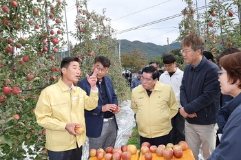 포항시의회(의장 김일만)가 31일 청하면·기북면 농가를 방문해 농작물 피해 현장을 점검했다.김일만 의장과 이재진 부의장, 지역구 김상백 의원 등이 함께한 이날 현장 방문은 최근 지속된 가을비와 일조량 부족으로 인한 벼·사과 농가 피해 상황을 파악하고 향후 대책 마련을