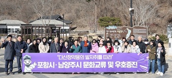 다산 정약용을 매개로 포항시와 인연을 맺은 남양주시의 시민교류단이 지난 17일 정약용의 첫 유배지였던 포항시 장기면을 방문했다.이날 방문은 주광덕 남양주시장을 비롯해 정약용 7대 종손 정호영, 정약용 시민해설사, 문화관광해설사 등 40여 명이 다산 정약용의 문화 유적을