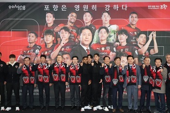 포항시(시장 이강덕)는 7일 시청 3층 로비에서 포항스틸러스의 선전을 기원하며 ‘2025년 포항스틸러스 시즌예매권 판매행사’를 진행했다.이번 행사에는 박태하 감독을 비롯해 주장단인 완델손, 한찬희, 이동희 선수와 팀의 맏형 신광훈 선수가 참여했으며 선수 사인회 및 올해