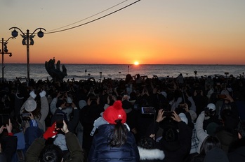 2025년 을사년 새해, 한반도 최동단인 포항시 남구 구룡포읍 호미곶의 첫 일출이 뜨자 시민들과 관광객들은 저마다 새해 소망을 빌었다.호미곶의 첫 일출을 보기 위해 2만2000여 명의 방문객들이 호미곶을 찾아 범국가적 추모 분위기 속에 어려운 시기를 함께 극복하겠다는