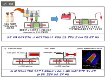 POSTECH(포항공과대학교) 기계공학과 조동우 특임교수 연구팀, 은평성모병원 안과 원재연 교수 연구팀, 한국외대 생명공학과 김정주(前 POSTECH 기계공학과 박사) 교수 연구팀이 3D 바이오프린팅 기술로 ‘망막-온-어-칩(retina-on-a-chip)’ 제작과 이