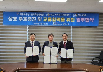대구북구청소년교육진흥재단과 청도우리정신문화재단이 지역 청소년들을 위한 교육 및 활동 기회를 확대하기 위해 힘을 모으기로 했다. 양 기관은 지난 3월 4일 오후 1시, 청소년 교류협력 활성화를 위한 상호업무협약(MOU)을 체결했다고 밝혔다.이번 협약은 양 기관의 우호 증