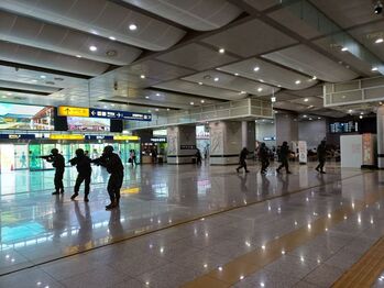경주시(시장 주낙영)는 19일 경주역에서 2025년 을지연습 실제훈련의 일환으로 ‘다중이용시설 폭발물 및 화학물질 테러 대응 훈련’을 실시했다.이번 훈련은 경주시와 대구지방환경청(청장 김진식)이 공동 주관했으며, 육군 제7516부대 1대대, 경주경찰서, 경주소방서, 경