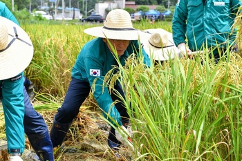 유정근 영주시장 권한대행, ‘8·15 광복쌀’ 올해 첫 벼베기 참여
