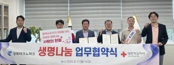 (재)경북테크노파크(원장 하인성)와 대한적십자사 대구·경북혈액원(원장 지정식)은 지난 11일 도내 사회적 가치 실현과 선진 헌혈 문화 정착을 위한 업무협약(MOU)을 체결했다.이번 협약은 양 기관의 상호 존중과 신뢰를 바탕으로, 생명나눔 헌혈을 통한 인도주의 실천 및