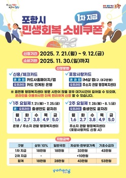 포항시, ‘민생회복 소비쿠폰’ 오는 21일 지급···민생경제회복 총력