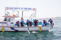 한수원 한울원자력본부(본부장 이종호, 이하 한울본부)는 4일 경북 울진군 북면 석호항에서 지역 어업인을 초청해 ‘온배수 이용 양식 어‧패류 방류행사’를 가졌다.이번 행사는 코로나19 영향으로 전년 대비 규모를 축소하고 생활 속 거리두기를 실천하는 등 방역수칙을 준수하며