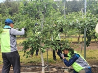 농협중앙회 농림수산업자신용보증기금(이하 농신보) 경북지역보증센터와 대구·포항·상주권역보증센터 임직원 등 20여명은 농촌일손돕기에 나섰다.이들은 지난 26일 일손 부족으로 어려움을 겪고 있는 농가를 돕기 위해 청송군 청송읍 소재 사과농가를 찾아 열매솎기 작업을 도왔다.농
