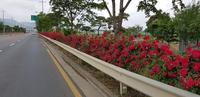 경산시 자인면(면장 류영태) 지방도 919호선 자인교~농업기술센터 및 국지도 69호선 남촌네거리~진량방향 도로변 3.5㎞ 구간에 장미꽃이 만개해 시민들의 눈길을 사로잡고 있다. 지난해 늦가을부터 줄장미 덩굴에 대한 전지작업, 잡풀뽑기, 넝쿨제거, 결속작업, 주변 수목제